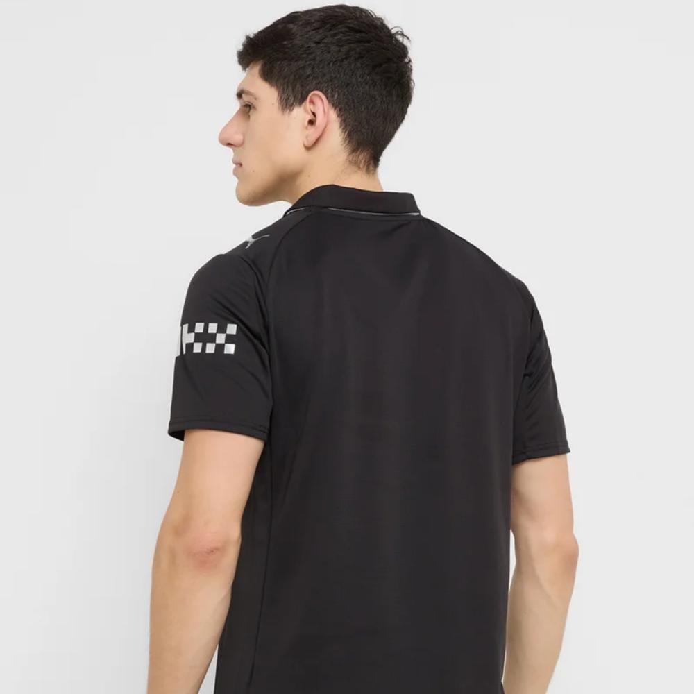 • يتوسطه كذلك شعار شركة Puma بالإضافة إلى شعار نادي مانشستر سيتي مع شعار الراعي الرسمي وهو Etihad Airways في وسط القميص بلون الابيض.