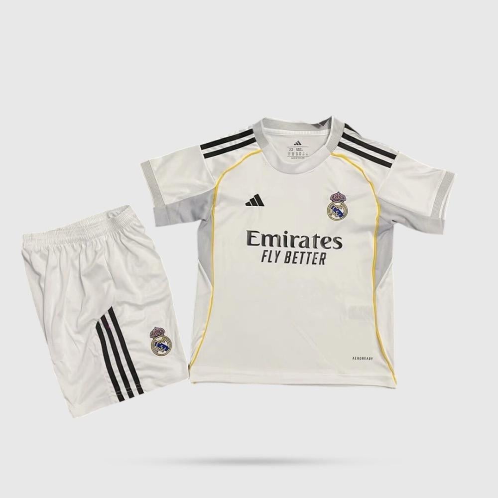 - تفاصيل ملكية: شعار ريال مدريد مطرز بإتقان، مع لمسات ذهبية تعكس فخامة النادي وتاريخه.