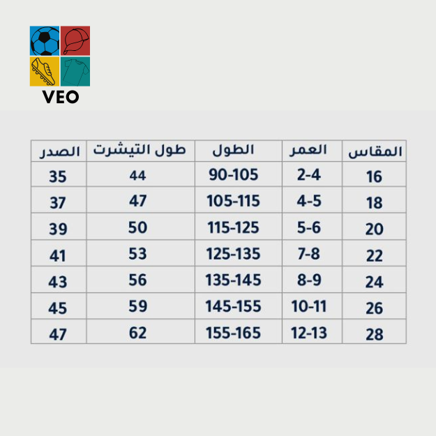 - المقاسات: متوفرة بجميع الأحجام للكبار والشباب